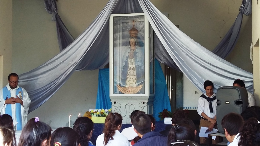 Durante la invocación religiosa, el padre Feliciano De Los Mozos bendijo las nuevas Banderas de Ceremonia de nuestra institución.